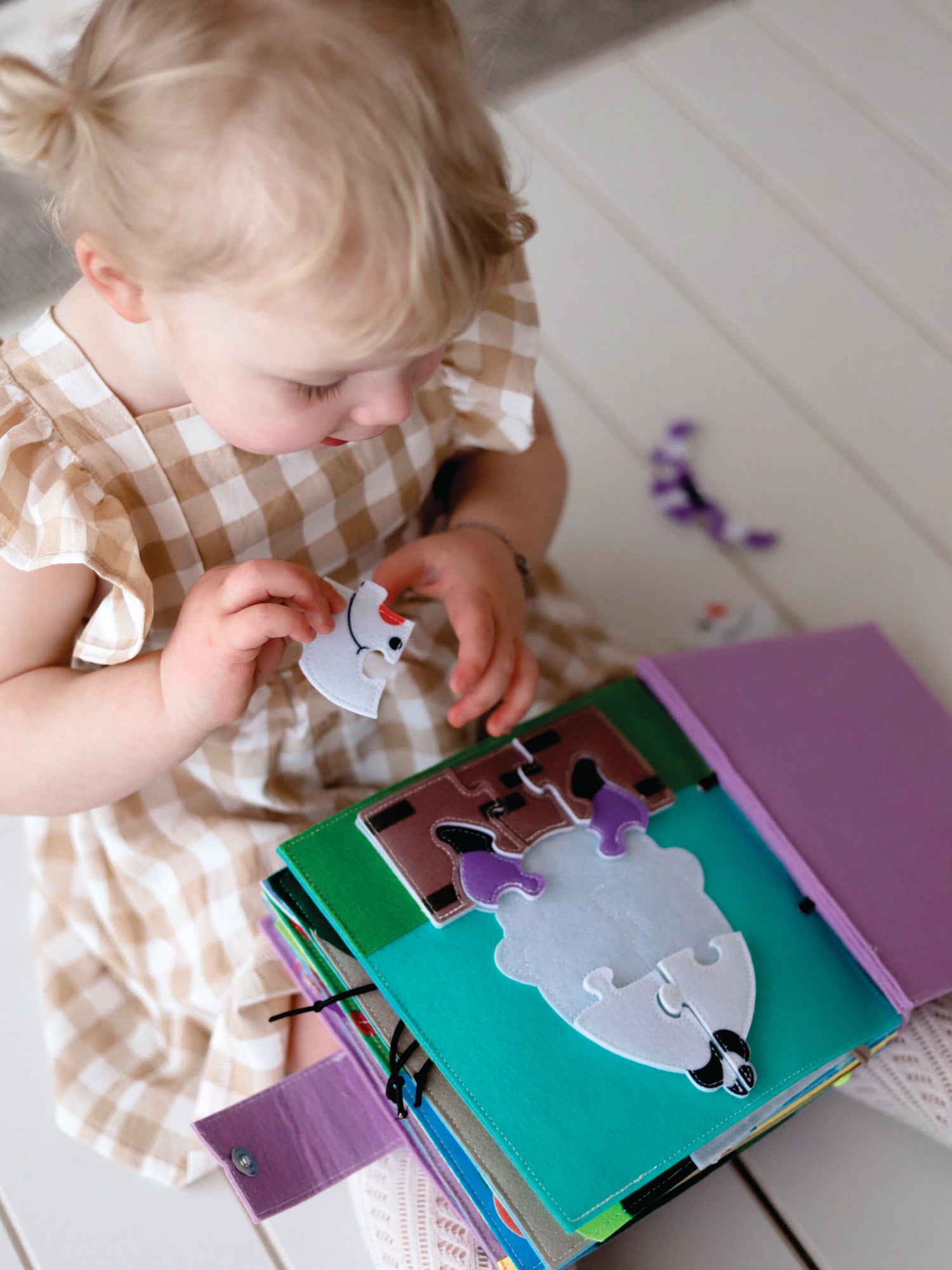 Page 1: Humpty Dumpty In addition to singing and acting out this classic nursery rhyme, Humpty is a puzzle can be taken apart and put together again. The outline of each puzzle piece is sewn on the book to help your child manoeuvre the pieces to the right position.