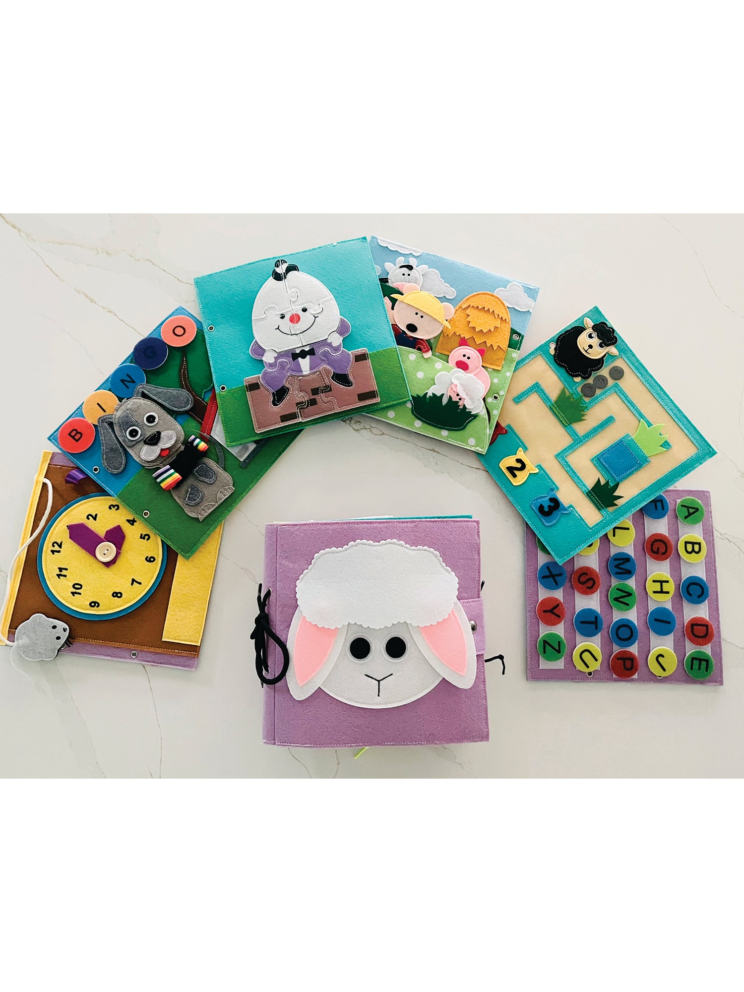 The Incy Wincy Spider, Old McDonald Had a Farm, BINGO, Rain, Rain Go Away, Hickory Dickory Dock, I'm a Little Teapot, Baa Baa Black Sheep, 1,2,3,4,5 Once I Caught a Fish Alive, Row, Row Your Boat, and the Alphabet Song.There's an option to personalise the book with engraved wooden letter beads or by adding the Name and Age Pages for that extra special personalised touch. Personalised books are also great for name recognition, spelling, the value of ownership and individuality.The Little Lamb Busy Book is endorsed and used by Paediatric Speech and Occupational Therapists specialising in hand therapy.*Children under the age of 3 must be closely supervised by an adult due to the presence of small parts.