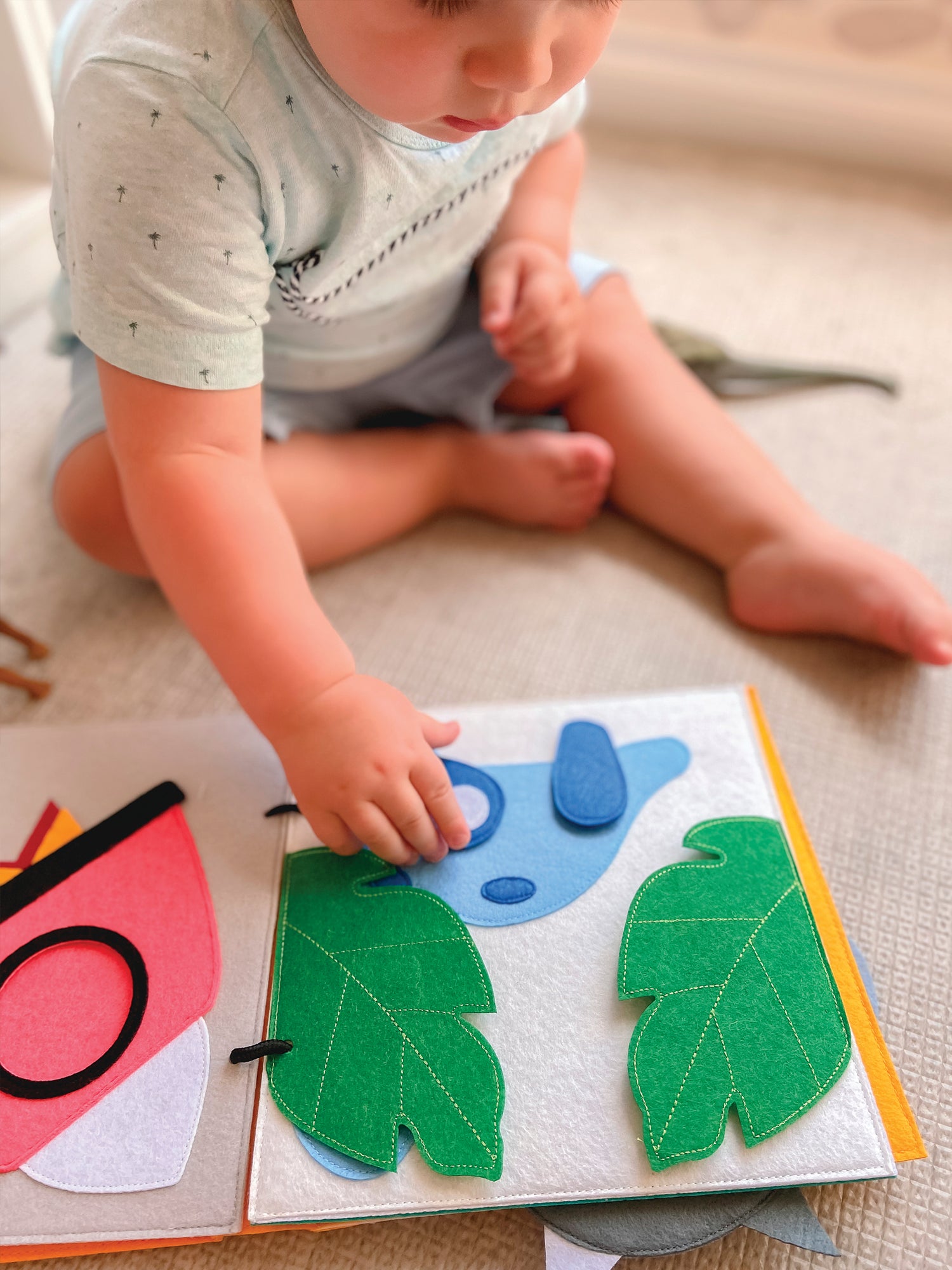 Discover the perfect first busy books (quiet books) for babies and toddlers! The Mighty Mouse and Lucky Lion come with interactive front covers and four engaging pages, sure to captivate little ones. The Mighty Mouse is filled with sensory elements like crinkly mouse ears, a rattle in a cat finger puppet, a squeaker in teddy, and a hidden ladybug! The Lucky Lion offers a zipper teeth brushing page, a Bumble Bee finger puppet, shape sorting, and threading for learning and fine motor development. These books contain no small pieces. Also, to ensure it withstands the roughest little hands, the cover and pages of both books are reinforced with an extra layer of felt. Age guide: 3-18 months
