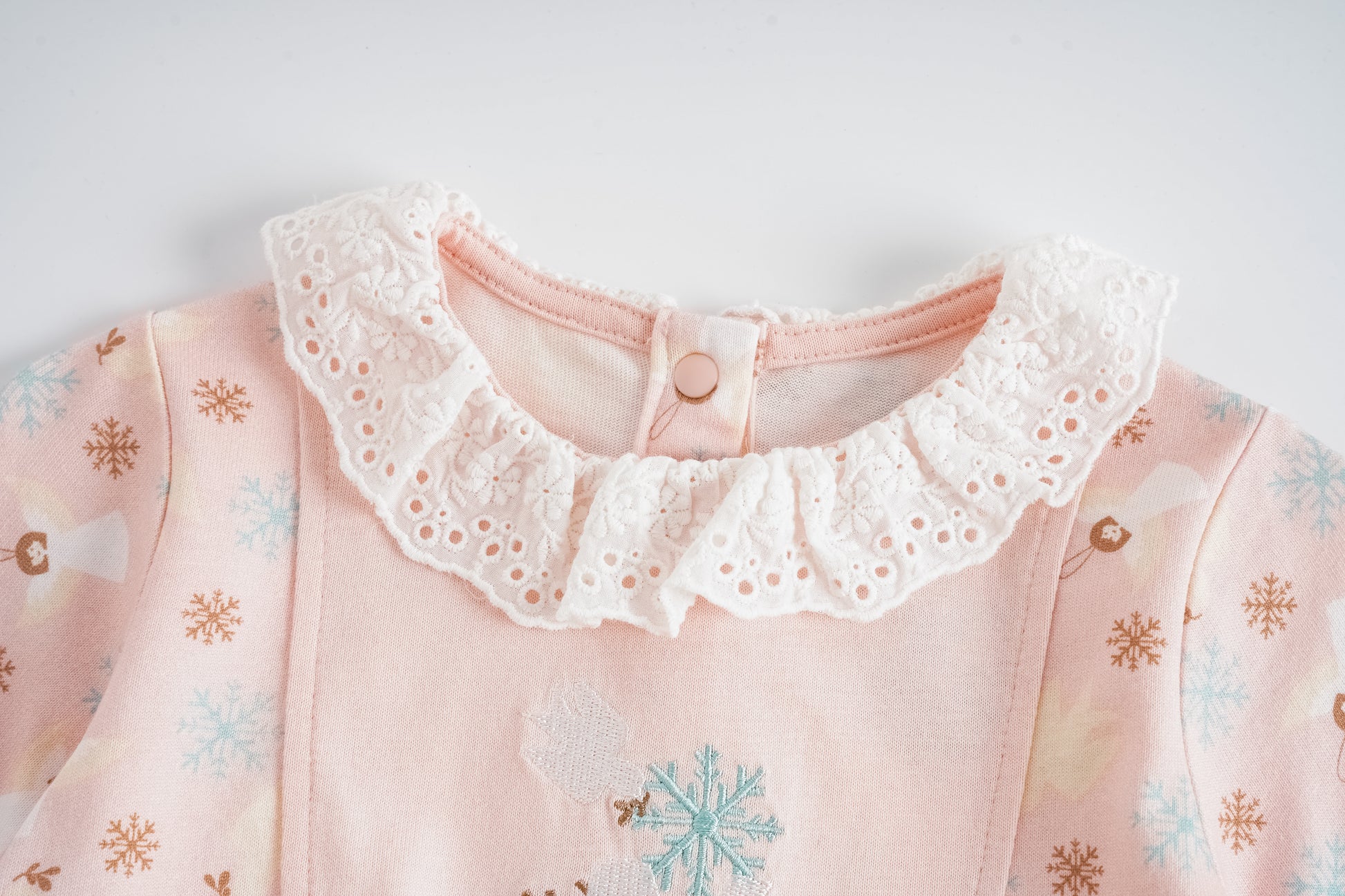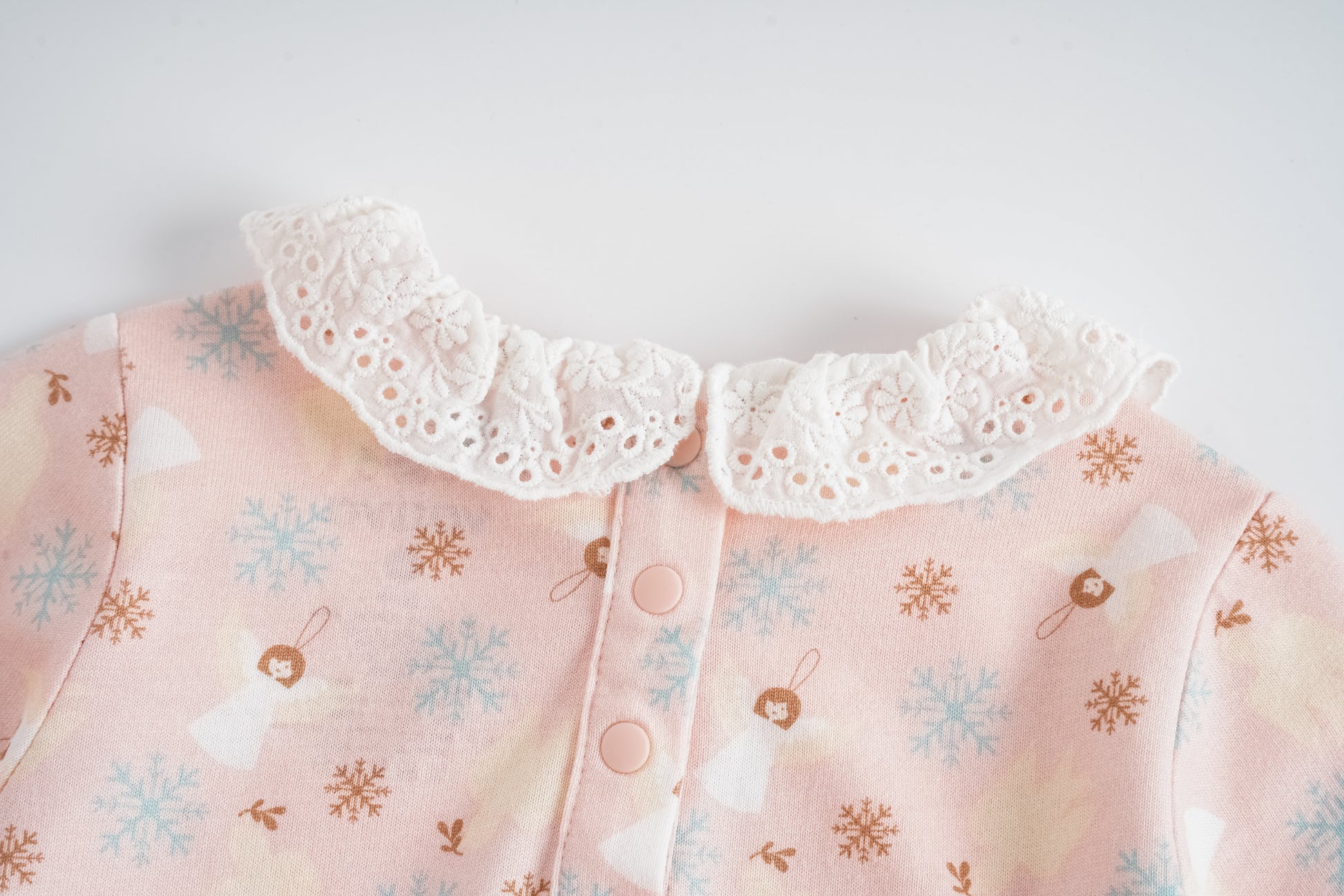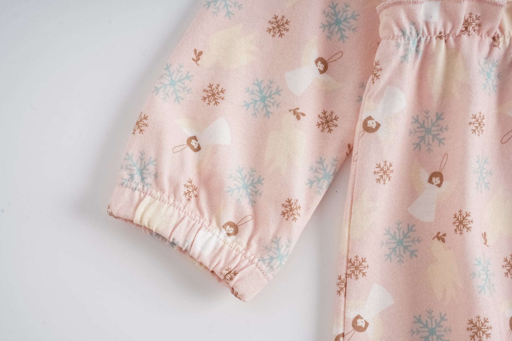.Soft, sweet, and full of whimsy — the Angel-Print Dress is designed to keep your little one comfortable and stylish all day long. Made from organic cotton, it’s lightweight, breathable, and perfect for delicate skin. The ruffle collar adds a touch of elegance, while the all-over angel print brings a playful, festive charm. A back button closure ensures easy dressing for busy mornings or special occasions.