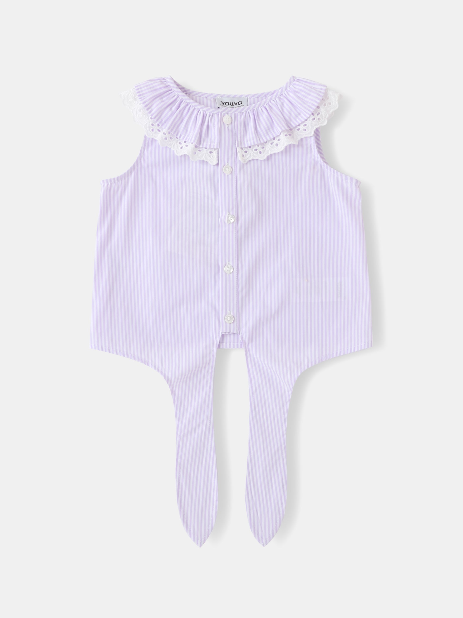 Girls Lace-Trimmed Collar Sleeveless Tie Bottom Top