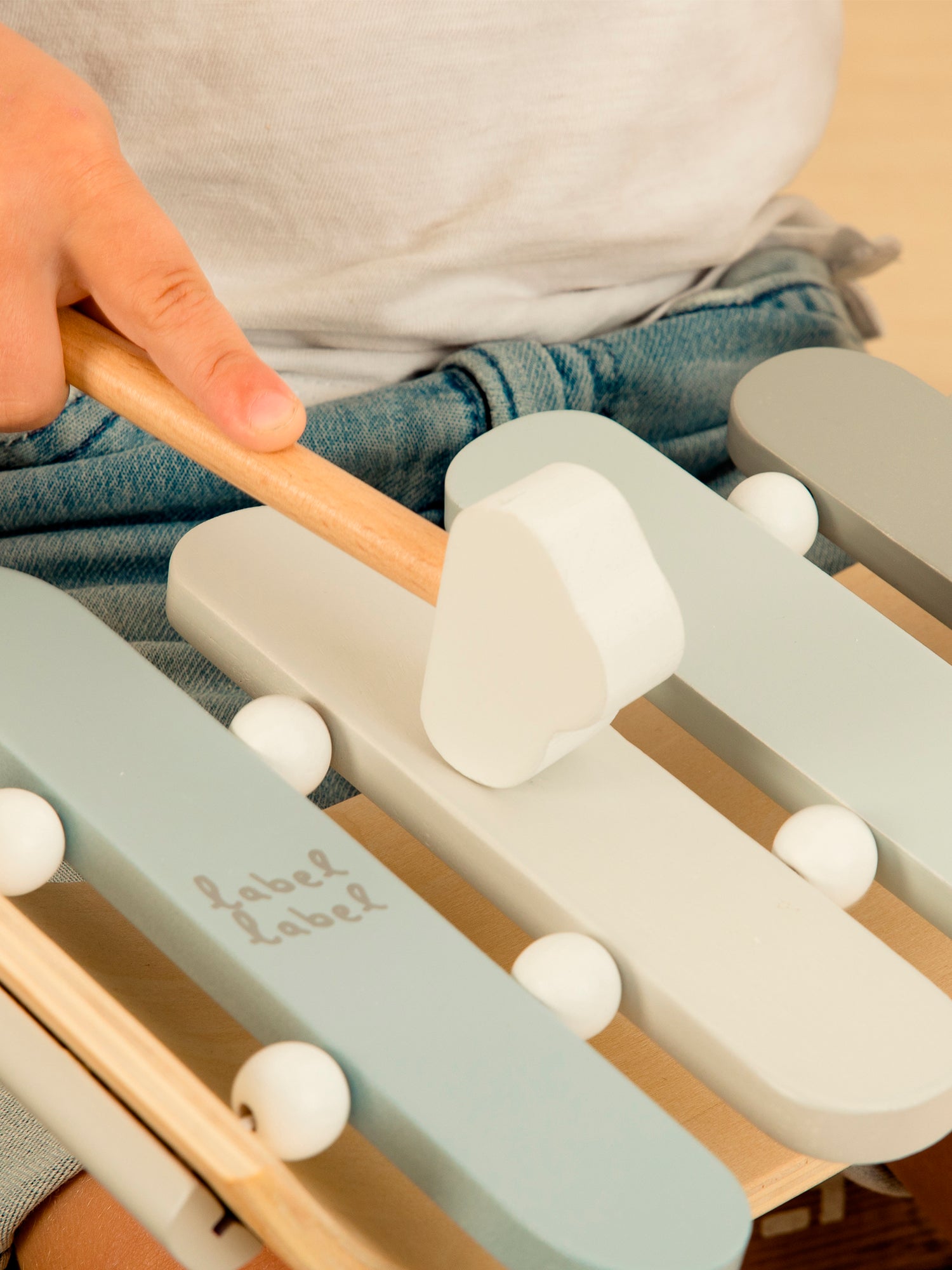 This wonderful wooden Xylophone in Label Label style is designed for the little musicians. The Xylophone is made of high-quality FSC certified wood and provided with beautiful shades using childfriendly water based paint. The lovely shaped xylophone comes with a matching stick, with which your little musician can develop its musical talent... mix sounds and rhythms ... it might be the start of a famous composer…