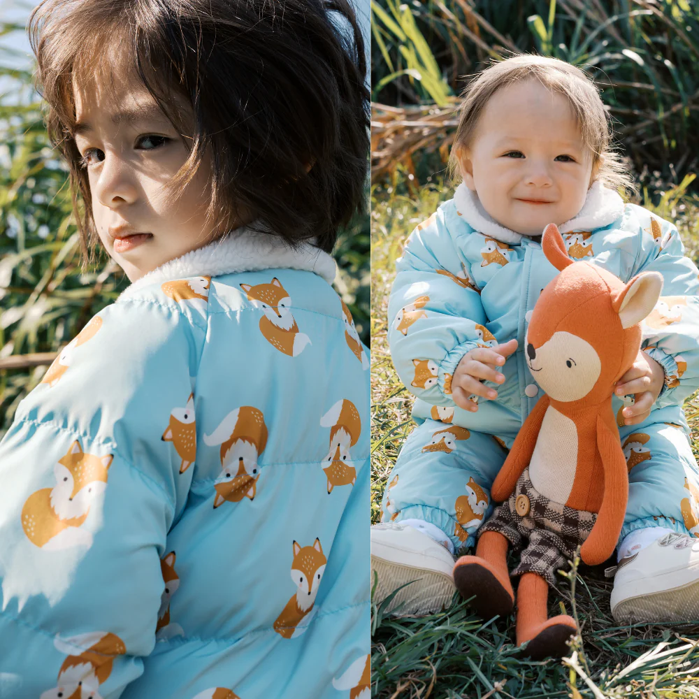 Feather-light warmth and radiant shield unite, letting little dreamers dance beneath frost and sun, fearless and free in nature’s embrace.