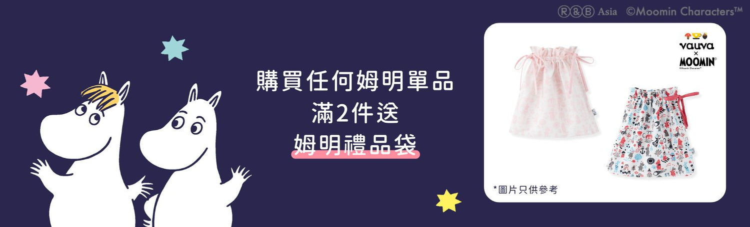 購買任何三件以上 Vauva x Moonmin 及 80th 週年產品