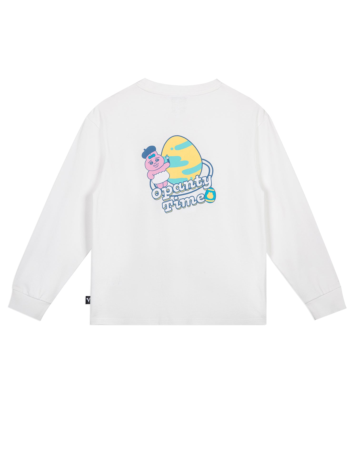 The back is printed with Opanchu Usagi in a playful “Opanty Time” scene, holding an egg and smiling shyly.